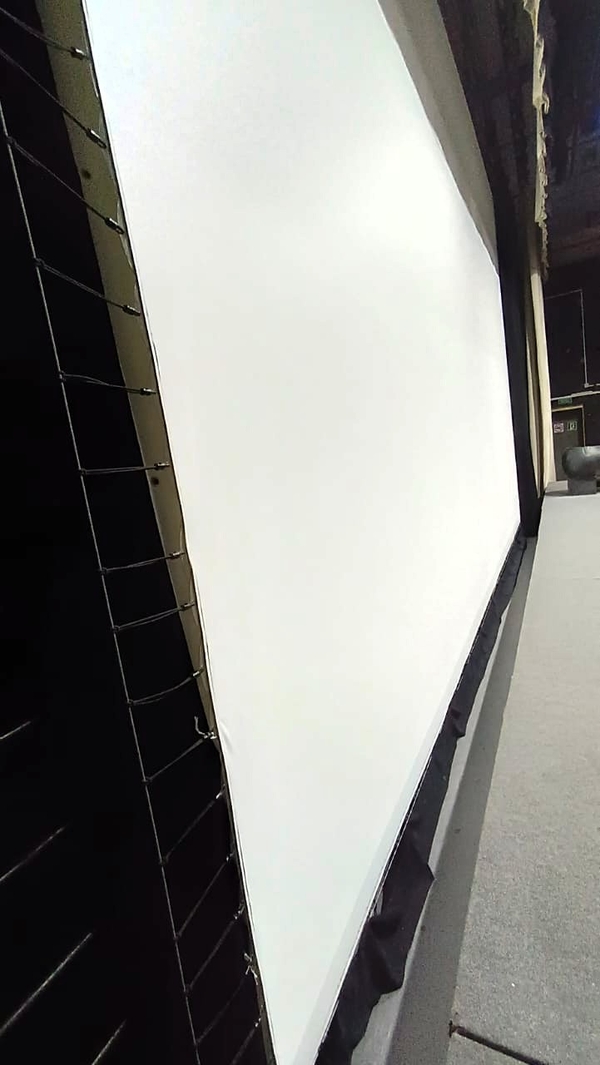 Пластиковые люверсы крепятся на полотно по периметру с шагом 15 см. И это делает наши полотна идеальными при создании изогнутых панорамных экранов (используемых в авиа симуляторах и аттракционах).